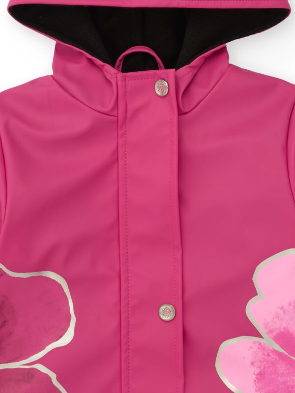 Αδιάβροχο μπουφάν με επένδυση και κουκούλα. Κλείνει με φερμουάρ.
