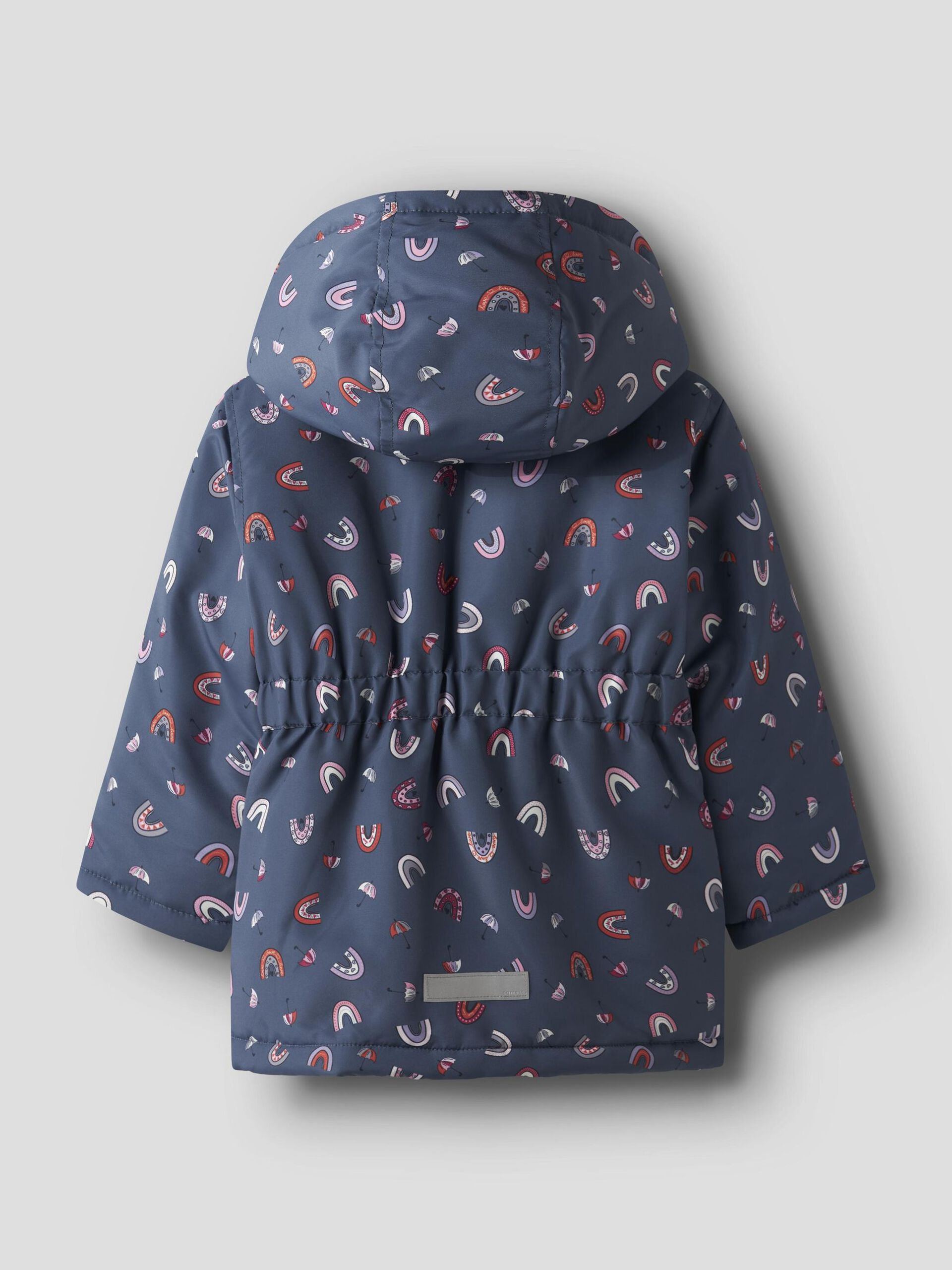 Αδιάβροχο μπουφάν με κουκούλα και εσωτερικό λάστιχο στα μανίκια. Κλείνει με φερμουάρ.