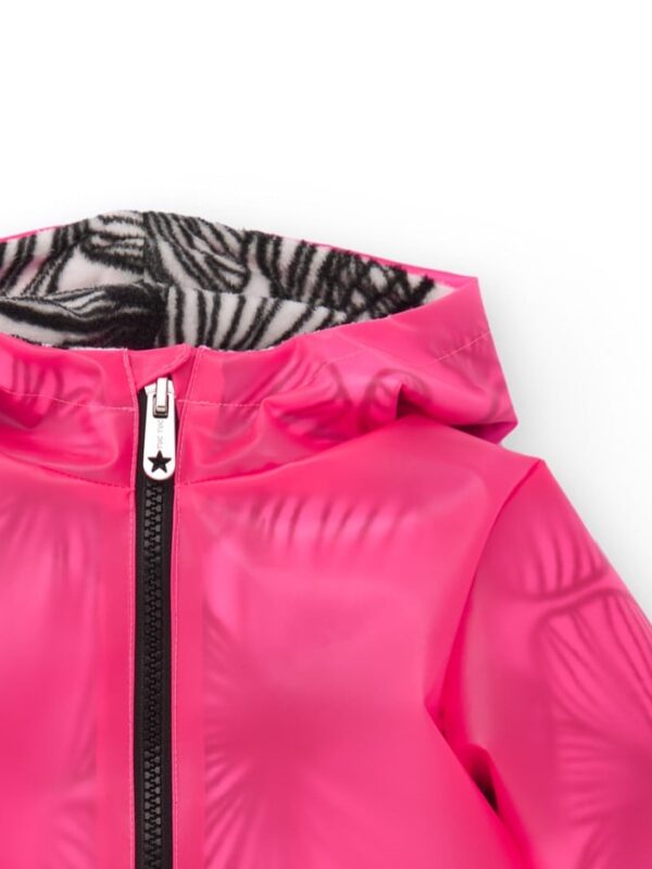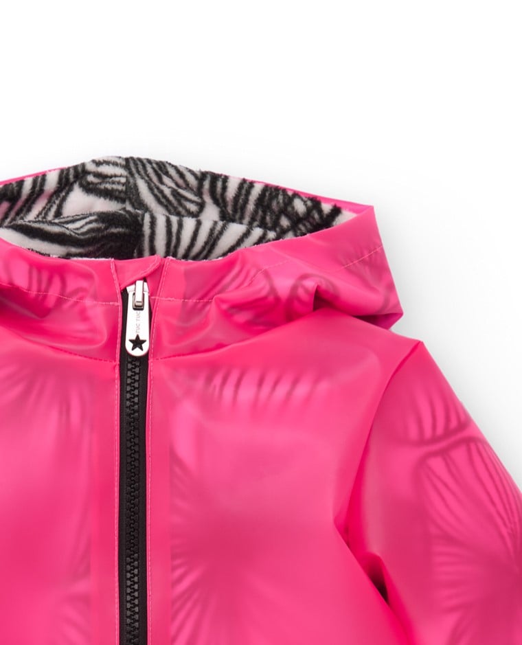 Αδιάβροχο μπουφάν με επένδυση και κουκούλα. Κλείνει με φερμουάρ.