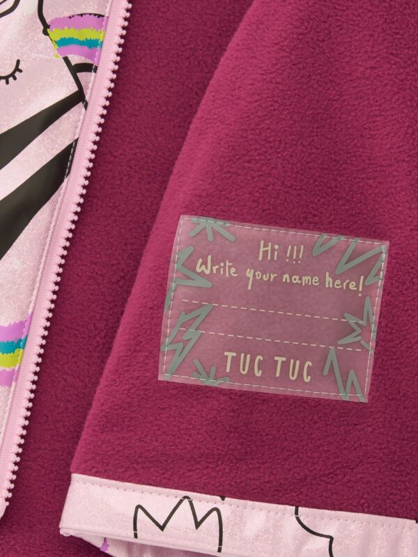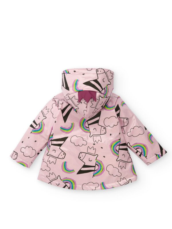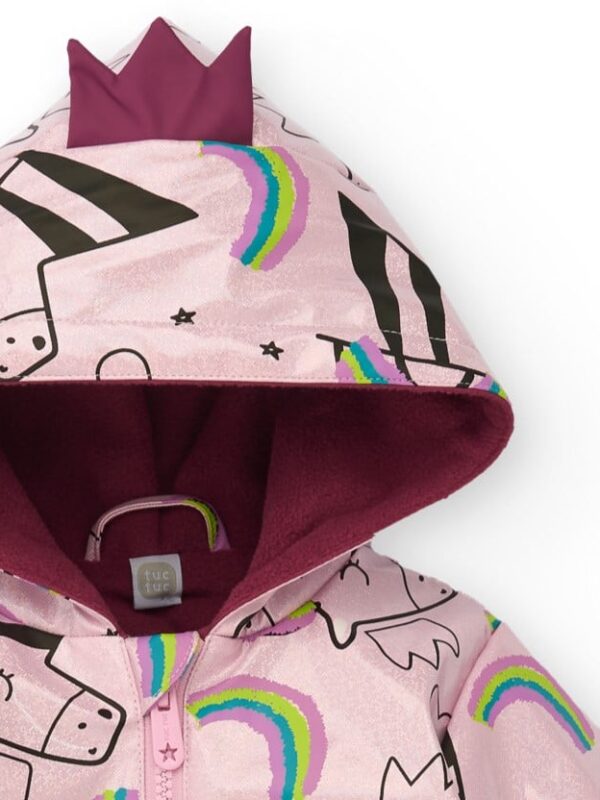 Αδιάβροχο μπουφάν με επένδυση και κουκούλα. Κλείνει με φερμουάρ.