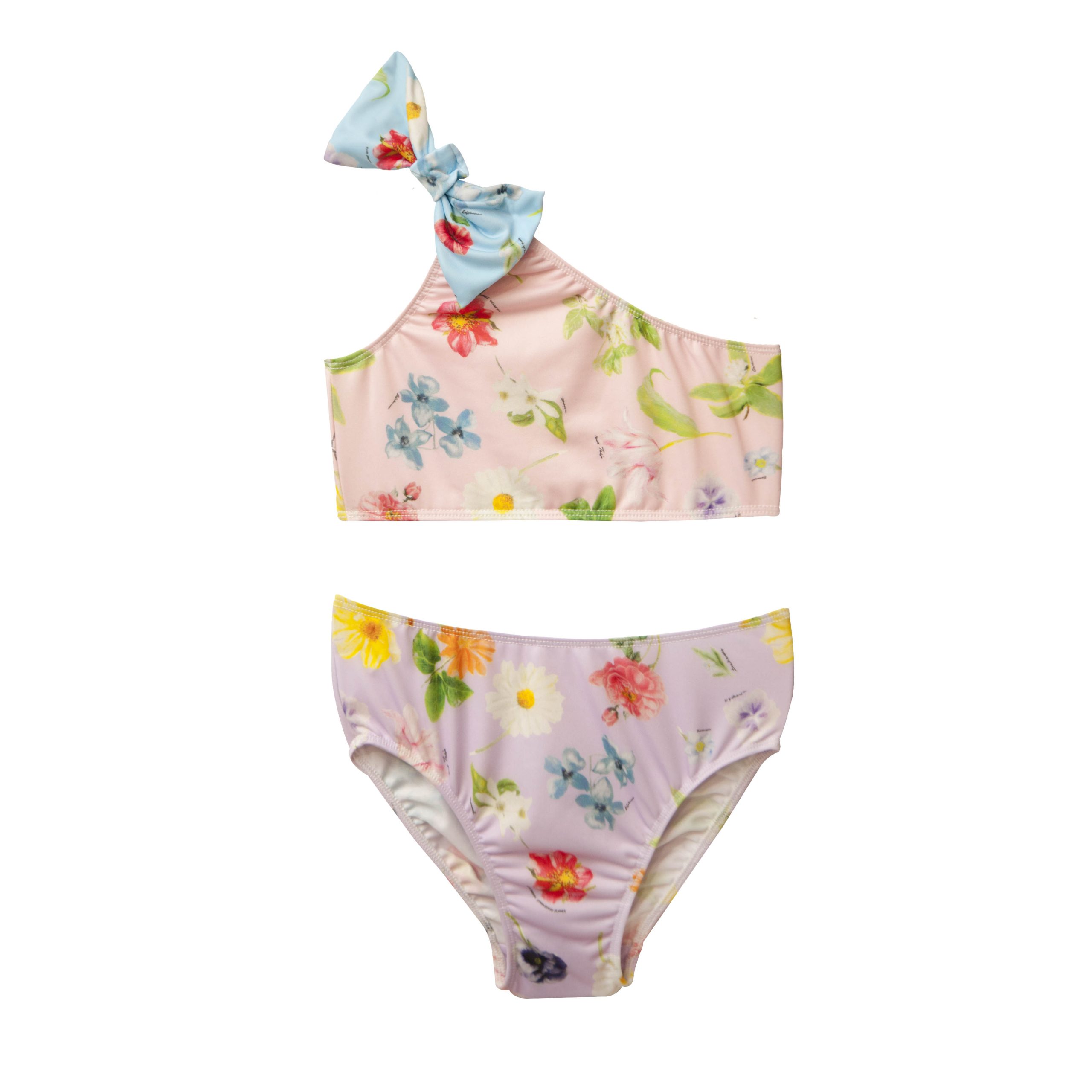 Μαγιό μπικίνι σε floral print. Το πάνω μέρος έχει έναν ώμο καια λάστιχο στο τελείωμα.