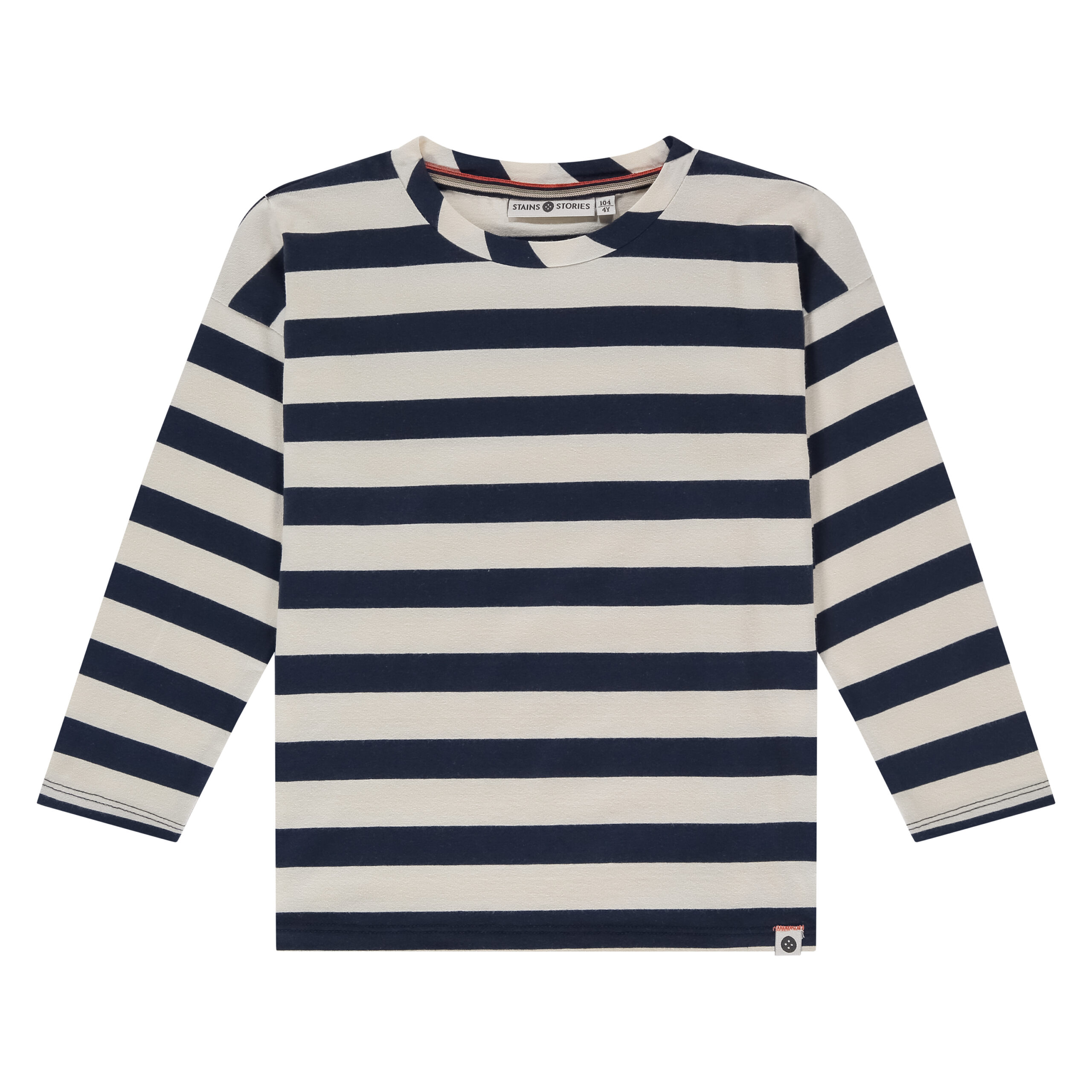 Μακρυμάνικη μπλούζα με μπλε και λευκές ρίγες.