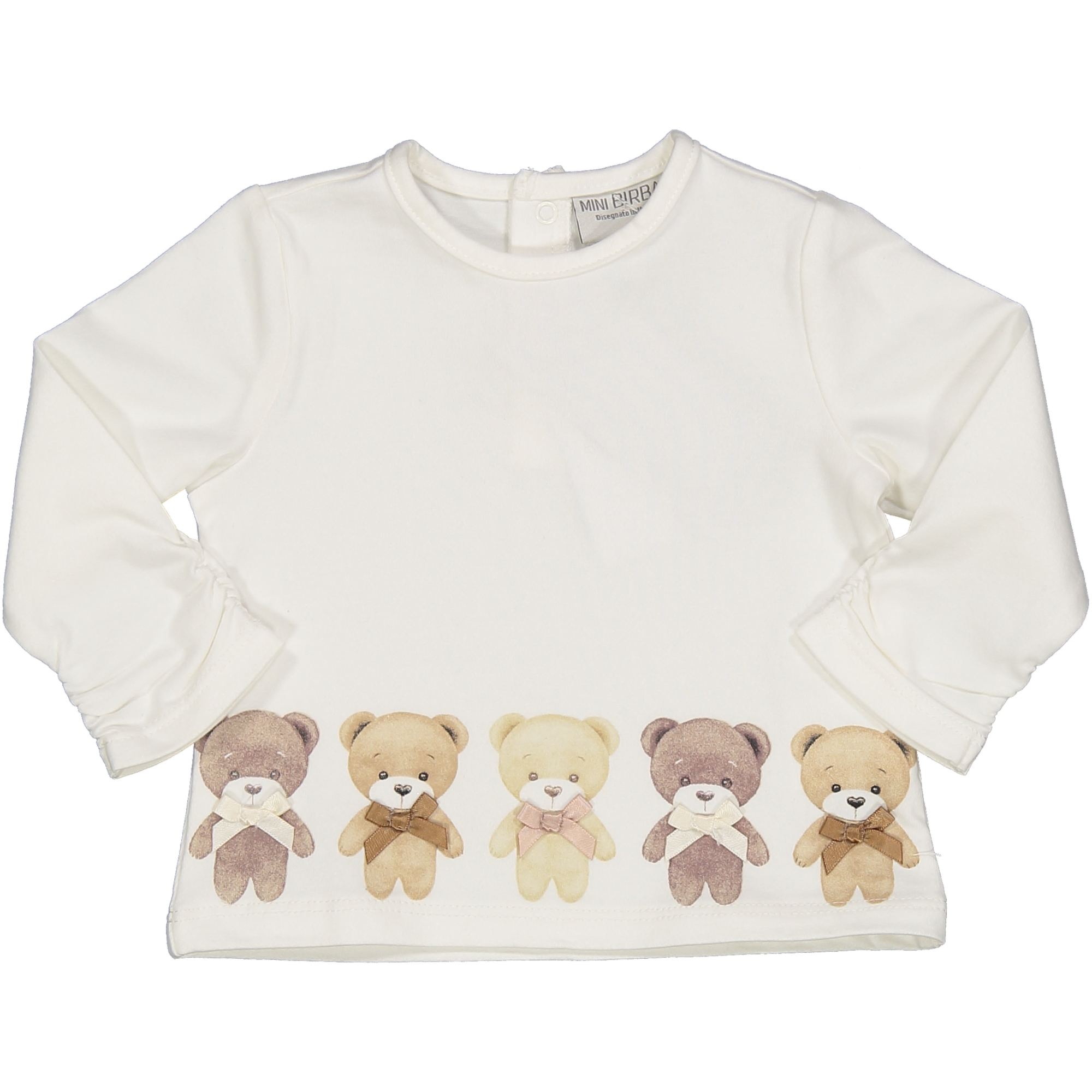 Βρεφική μακρυμάνικη μπλούζα με τύπωμα αρκουδάκια στο κάτω μέρος. Κλείνει με τρουκς στην πλάτη