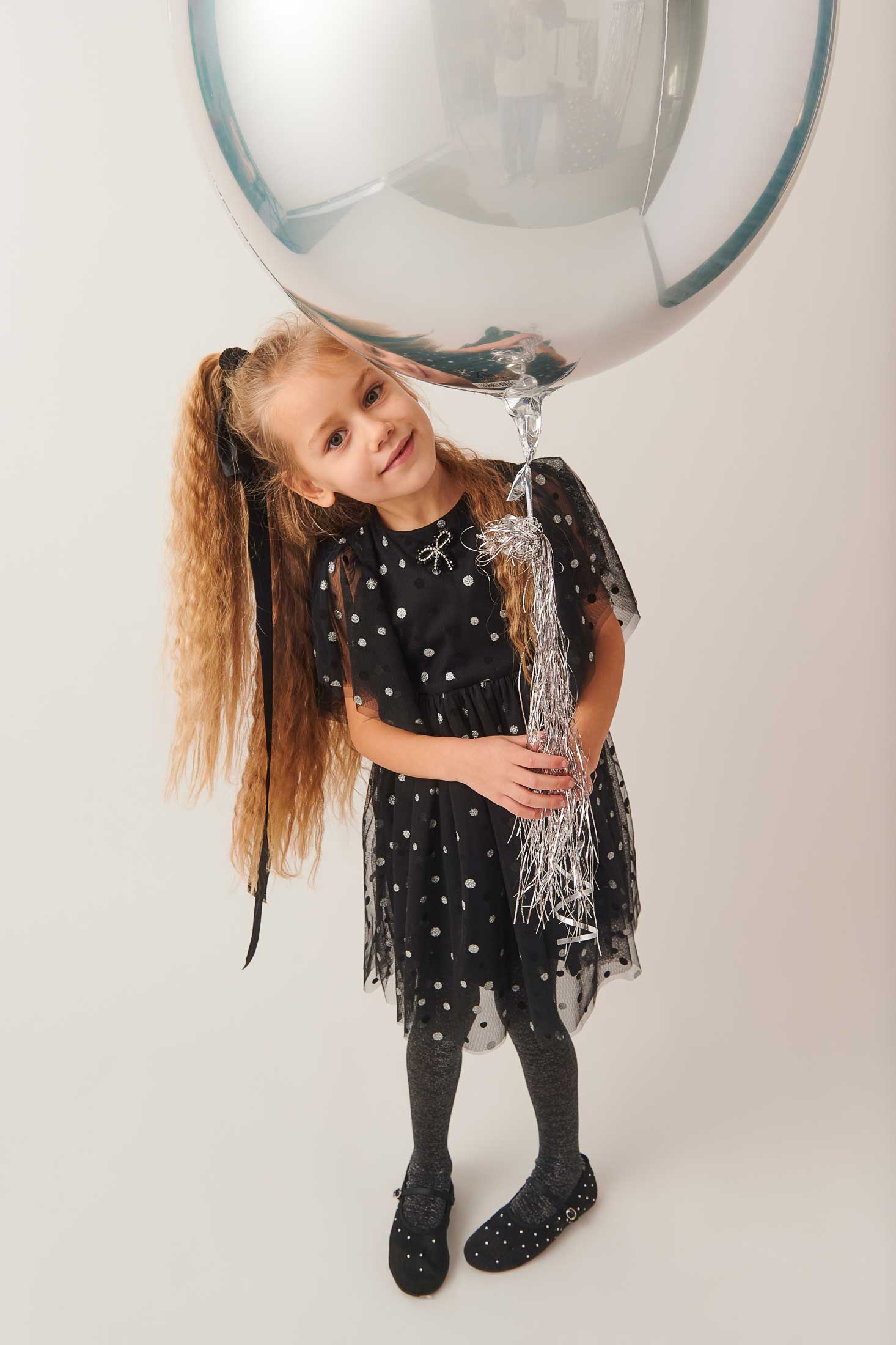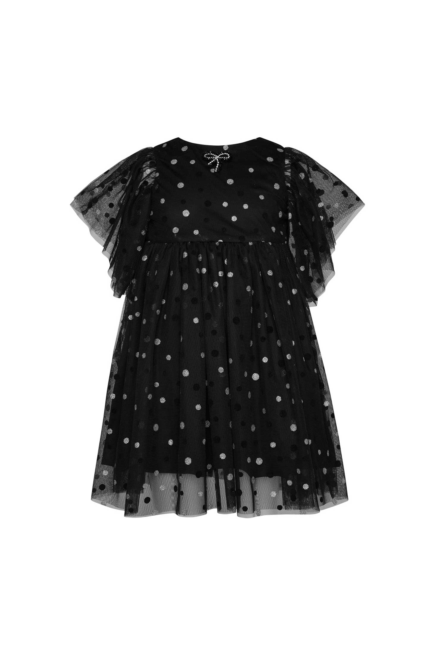 Φόρεμα από τούλι σε πουά μοτίβο με κοντά μανίκια και διακοσμητικό φιόγκο.