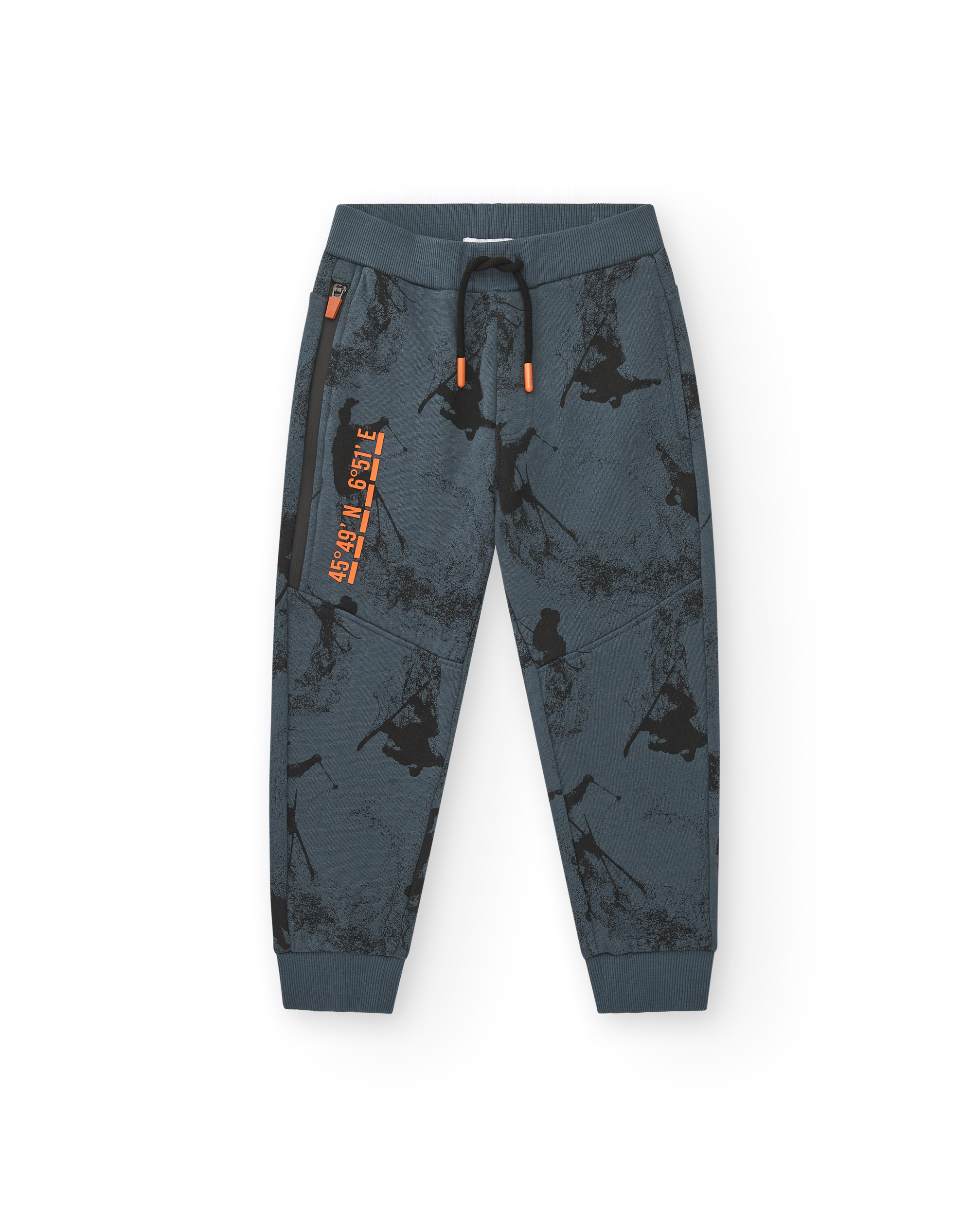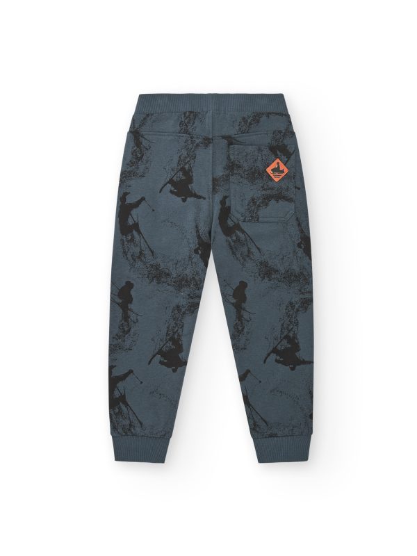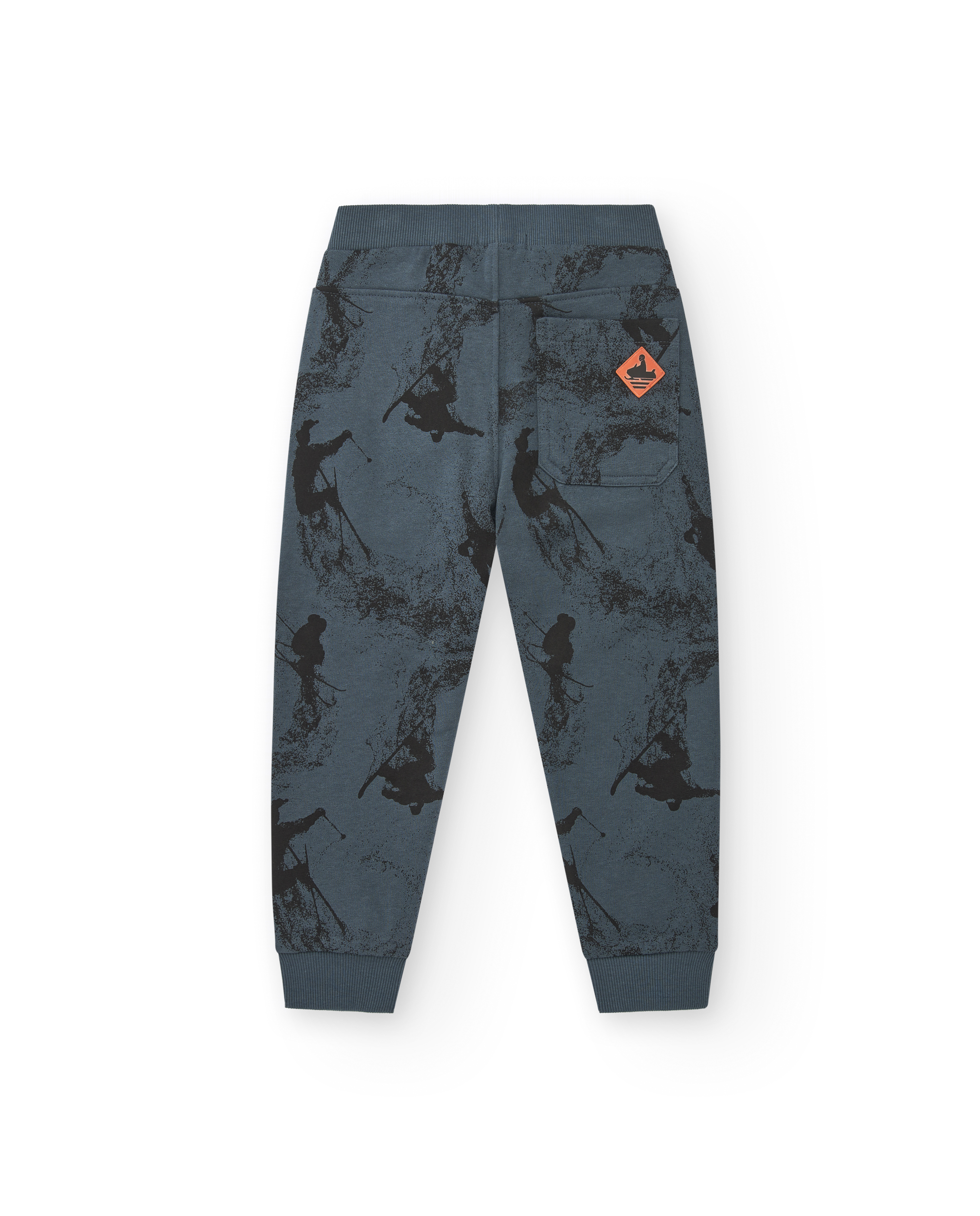 Παντελόνι φούτερ με allover τύπωμα σκιέρ, σε μπλε – γκρι απόχρωση.