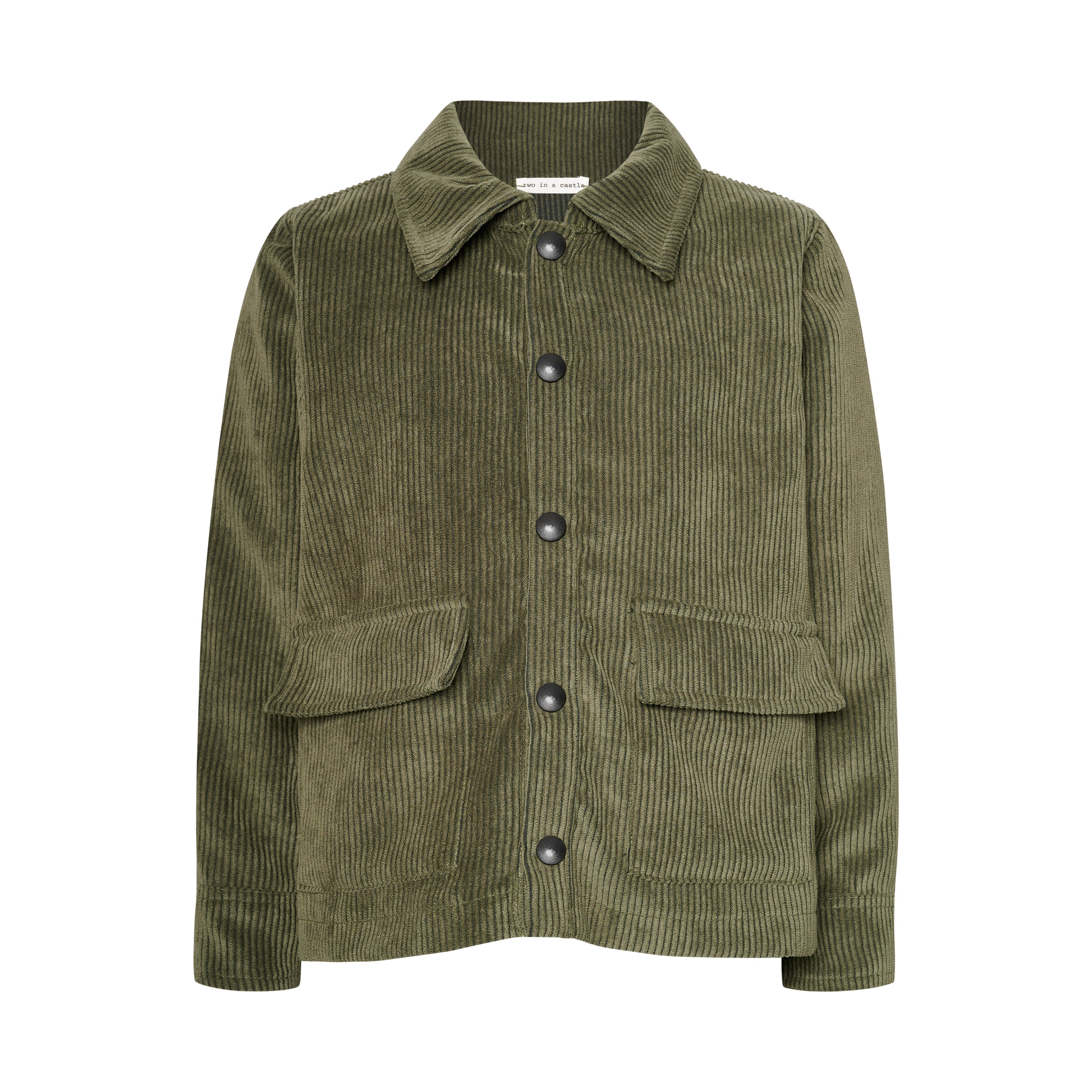 Κοτλέ πουκάμισο σε άνετη γραμμή που μπορεί να φορεθεί και σαν τζάκετ. Κλείνει με κουμπιά.