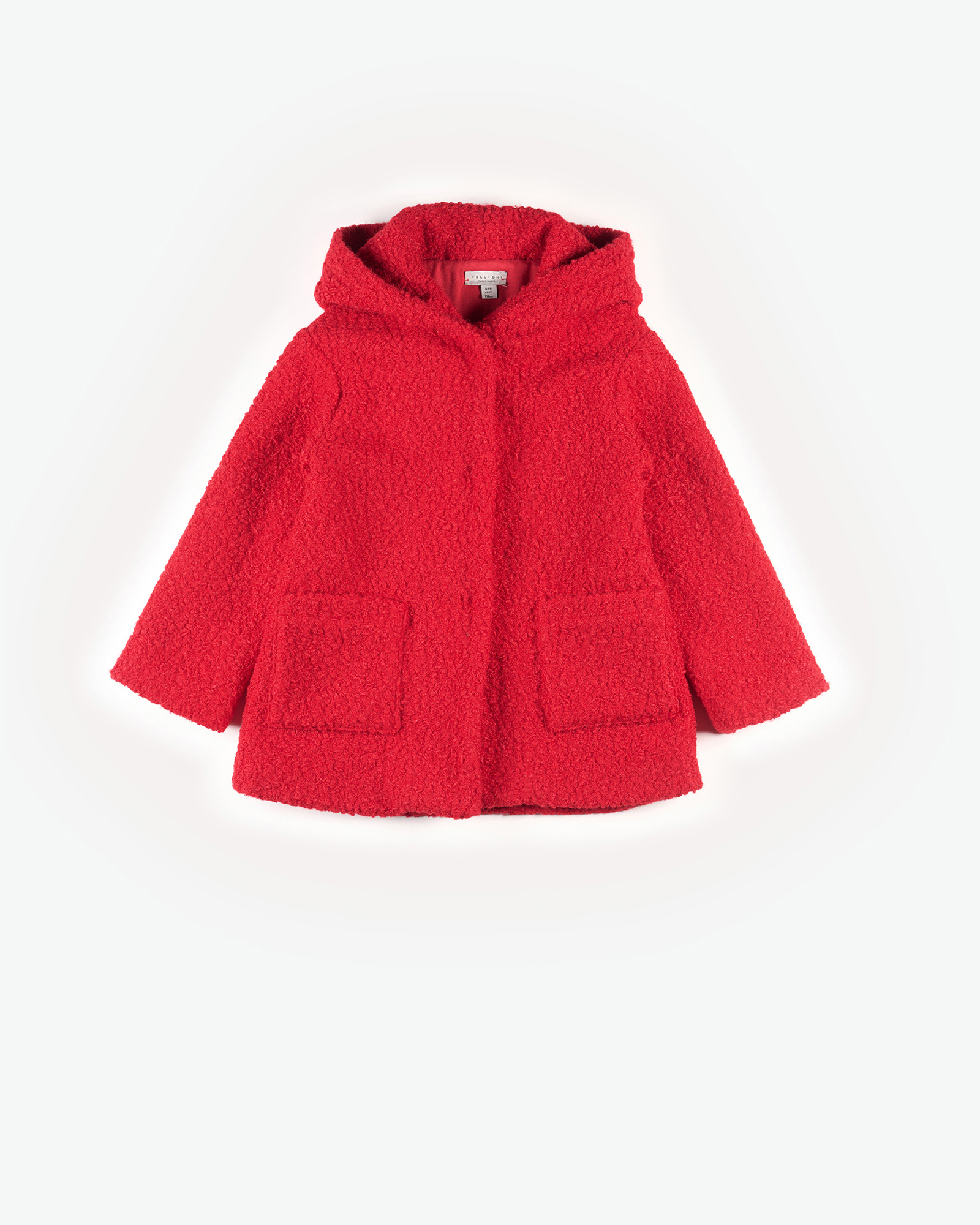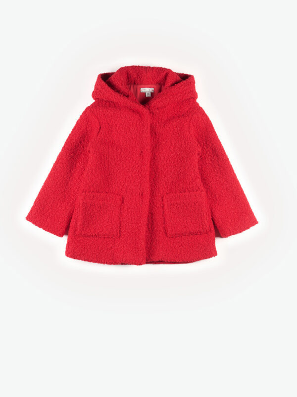 Παλτό μπουκλέ με κουκούλα και τσέπες.