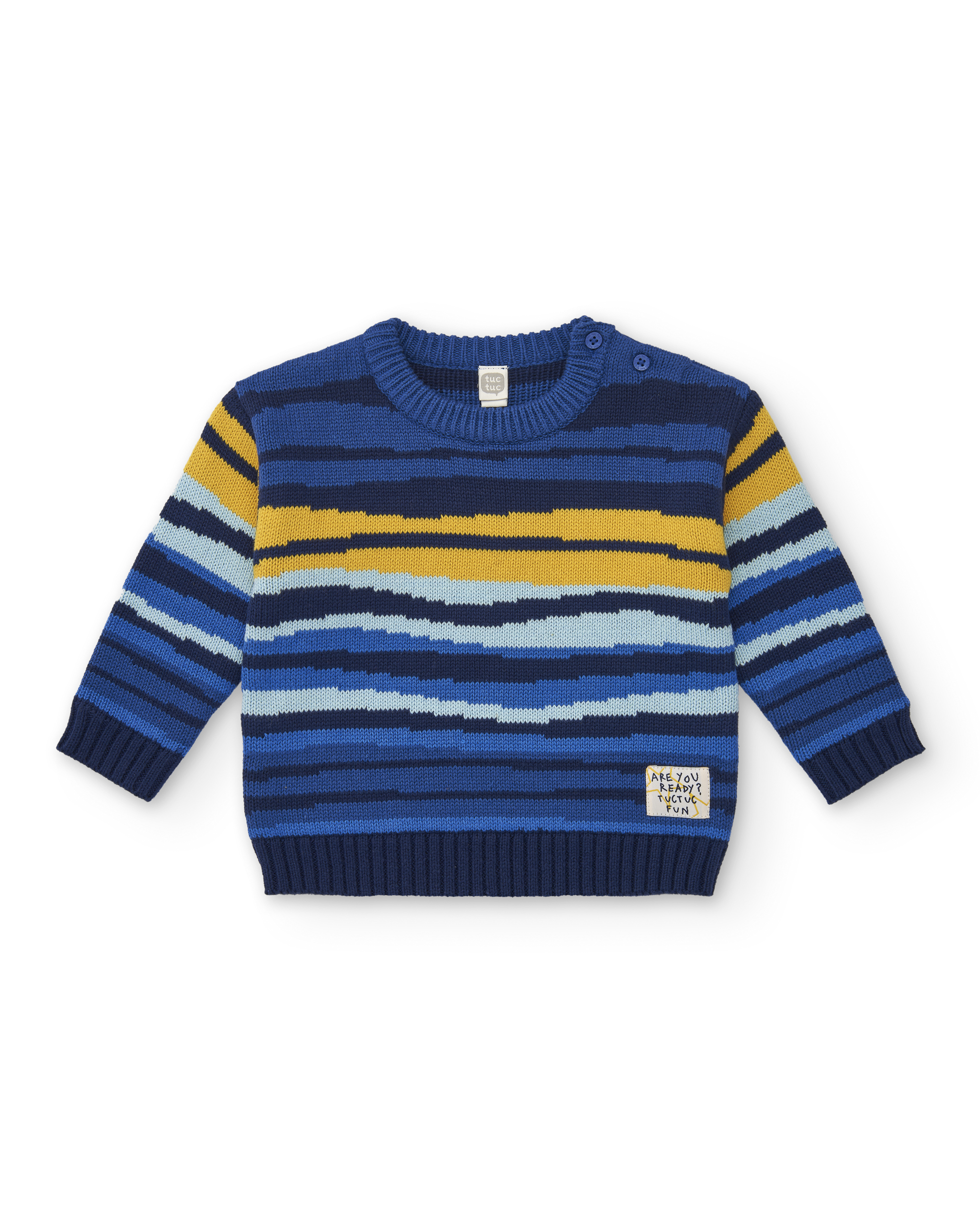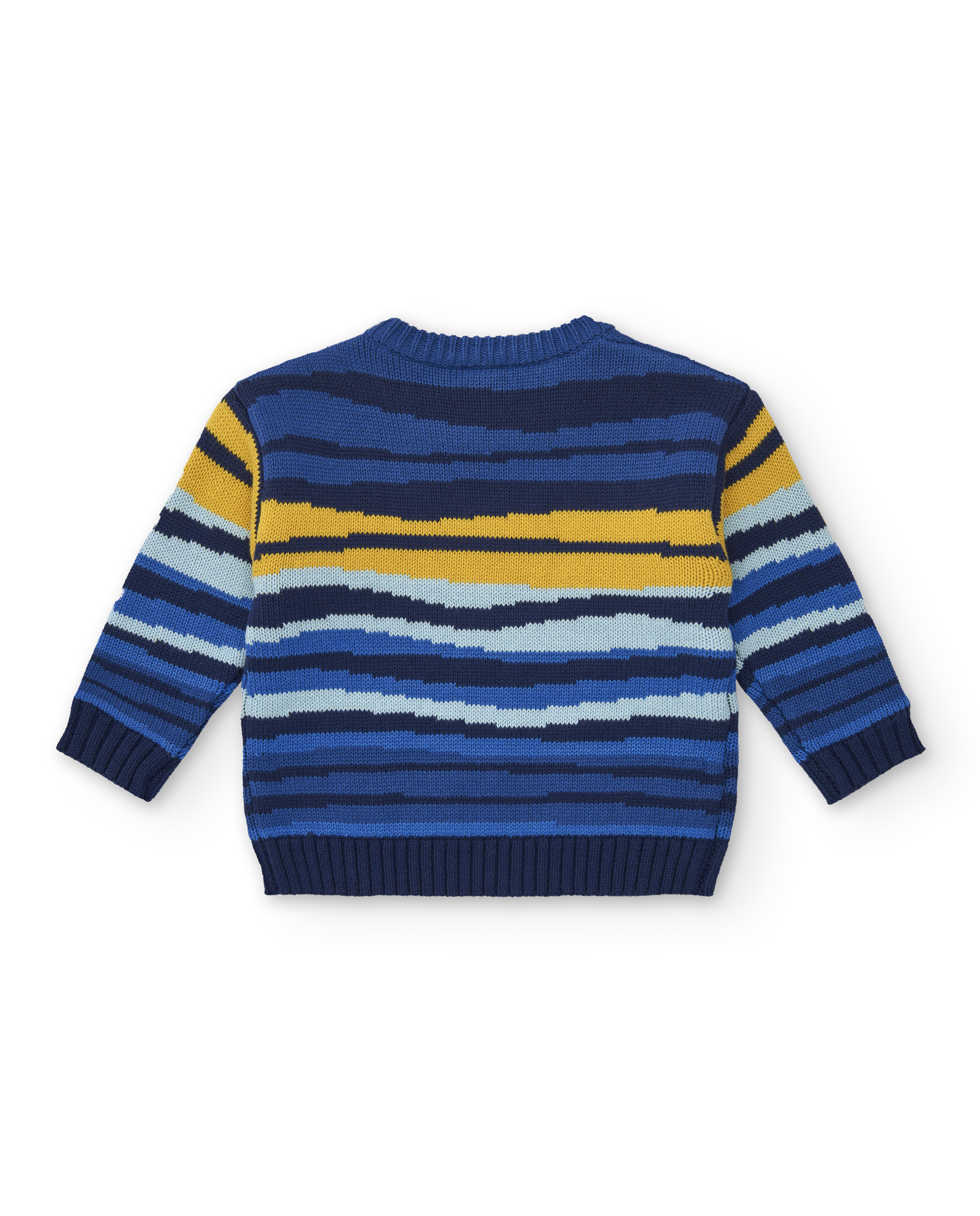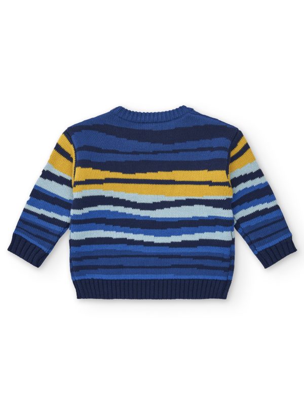 Πουλόβερ σε μπλε απόχρωση με κίτρινες λεπτομέρειες.
