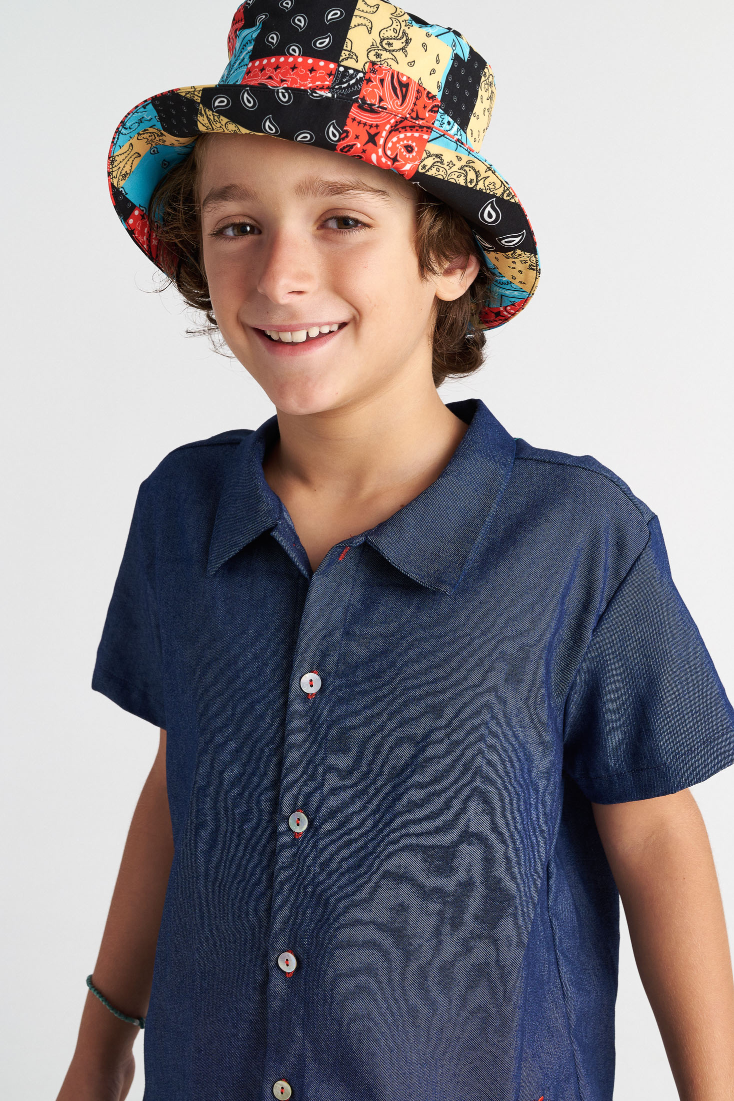 Κοντομάνικο denim πουκάμισο με γιακά και κουμπιά στο μπροστινό μέρος.