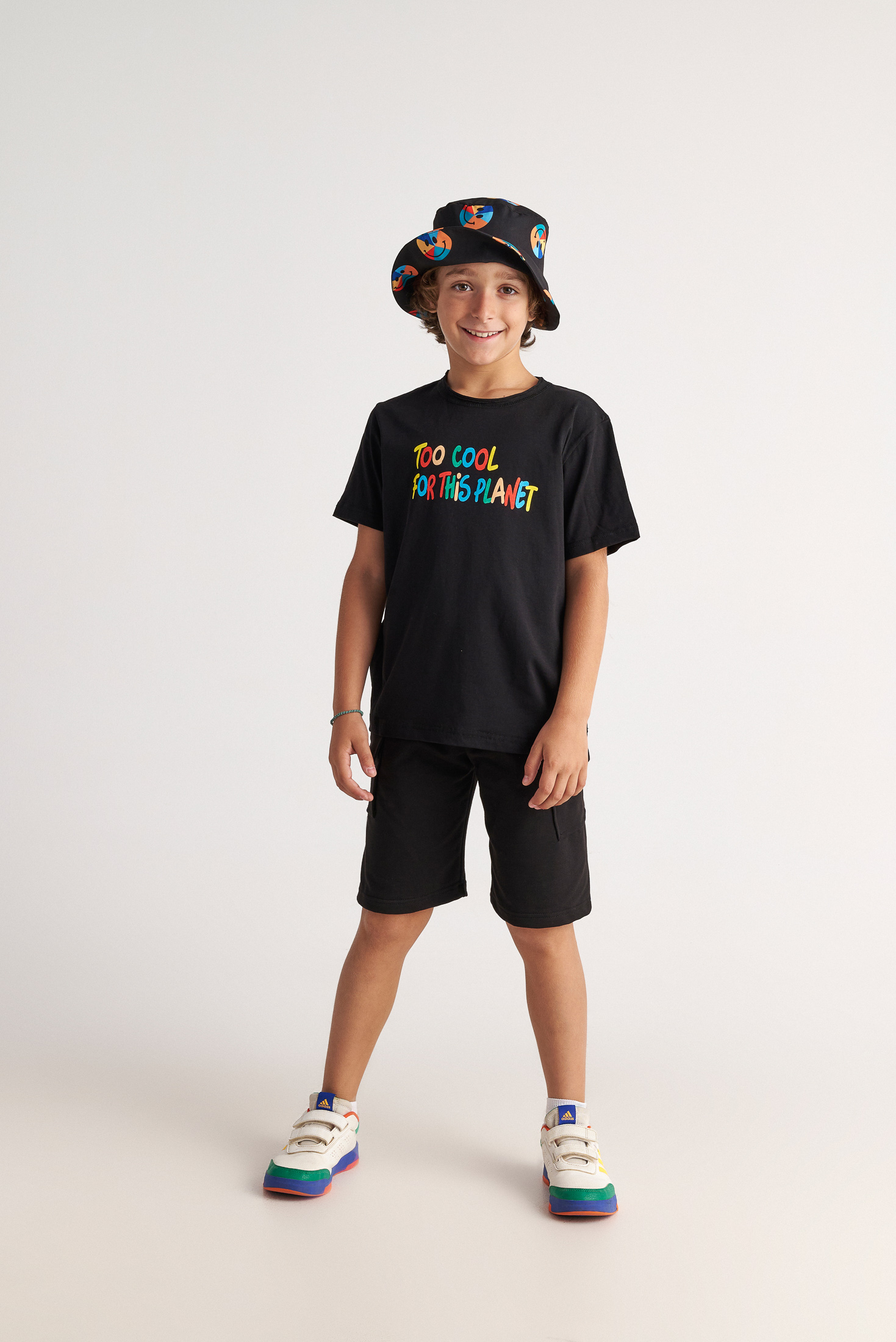 Σετ που αποτελείται από βερμούδα και κοντομάνικο μπλουζάκι με τύπωμα στο στήθος.
