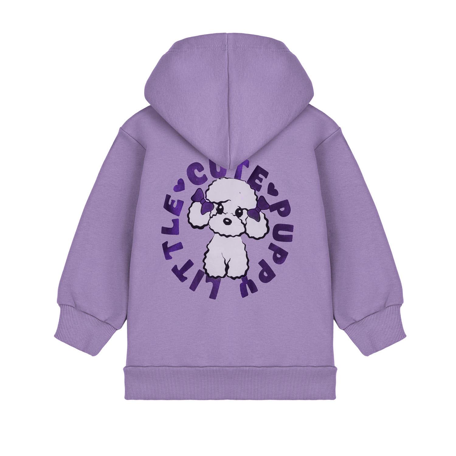 Σετ φούτερ φόρμα που αποτελείται από παντελόνι με λάστιχο στη μέση και μπλούζα με κουκούλα και τύπωμα στο στήθος και την πλάτη.