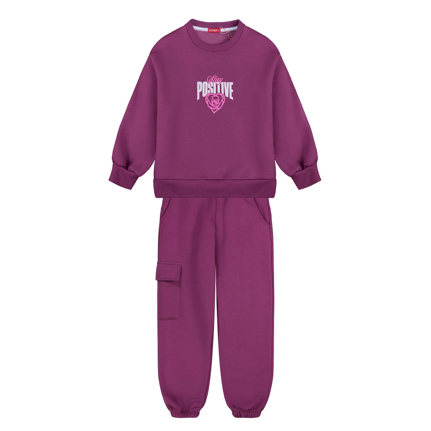 Σετ φούτερ φόρμα που αποτελείται από παντελόνι με λάστιχο στη μέση και μπλούζα με τύπωμα στο στήθος.
