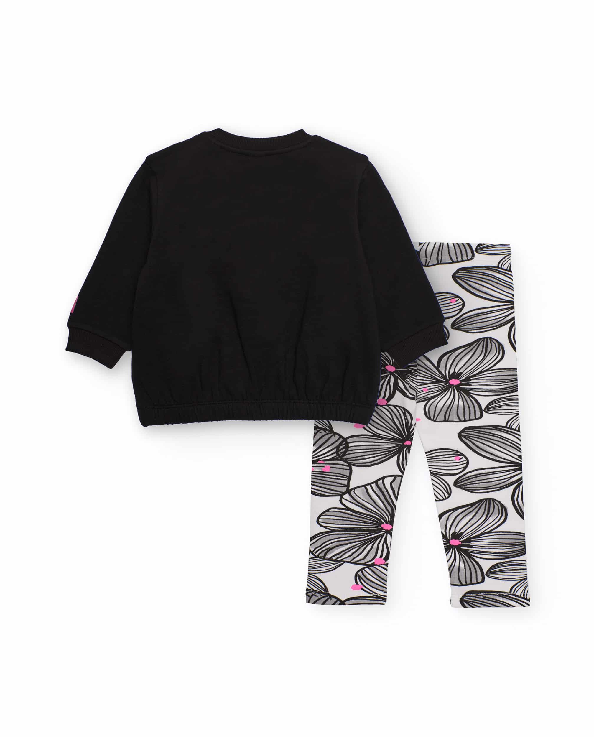 Σετ που αποτελείται από κολάν με λάστιχο στη μέση και print λουλούδια και φούτερ μπλούζα με 3D λουλούδια το στήθος.