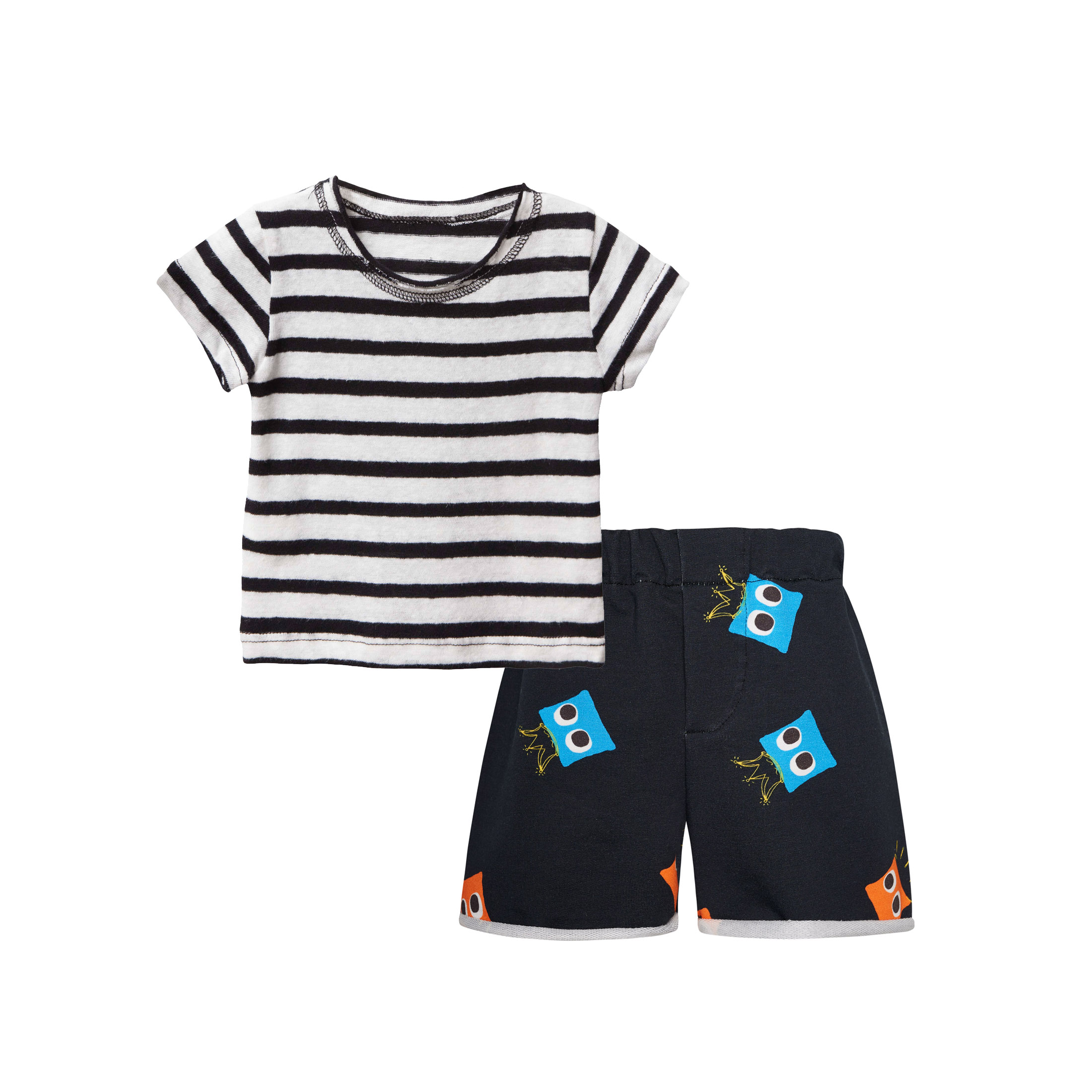 Βρεφικό σετ με σορτσάκι και ριγέ κοντομάνικο μπλουζάκι.