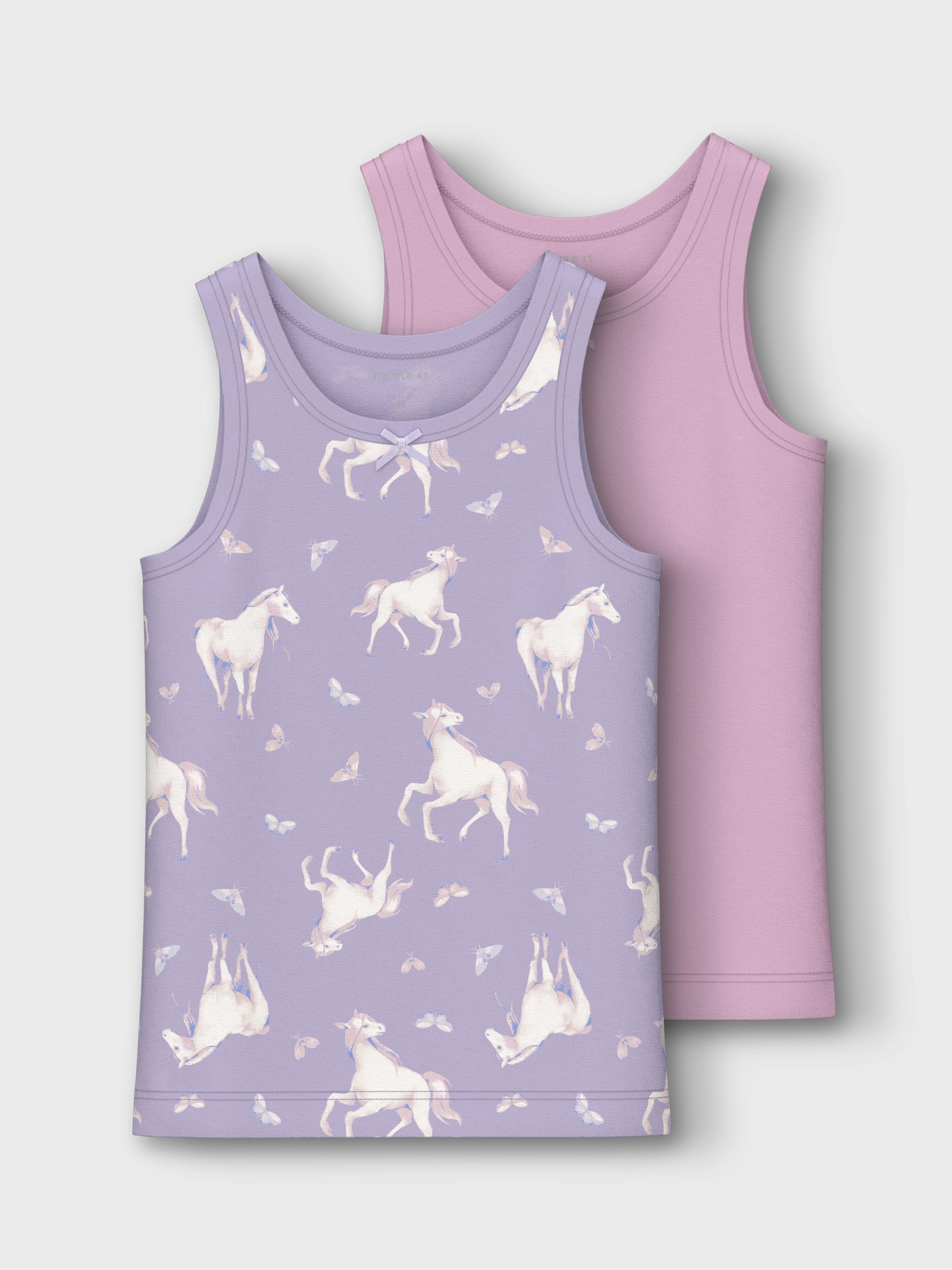Σετ 2 τεμ. βαμβακερά φανελάκια με τιράντα σε ροζ και λιλά απόχρωση.