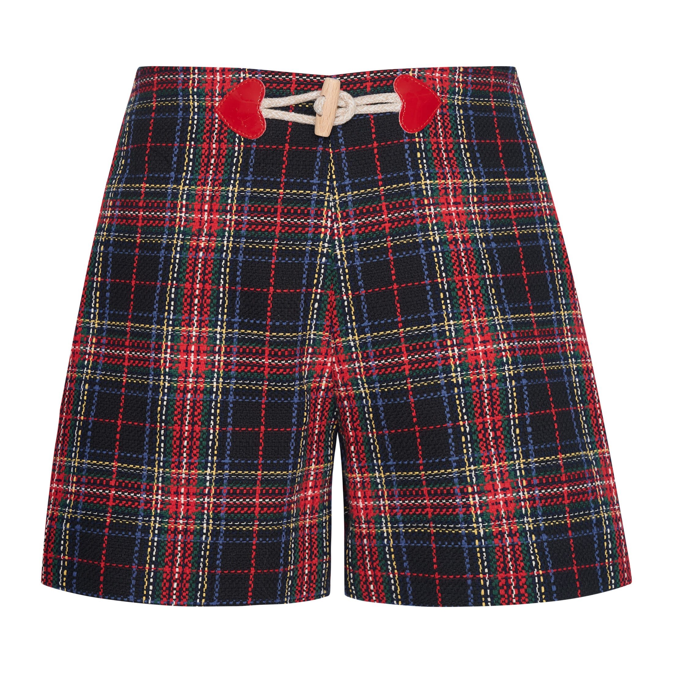 Σετ που αποτελείται από καρό κοντό σορτσάκι και φούτερ μπλούζα με φιόγκο στο μπροστινό μέρος.