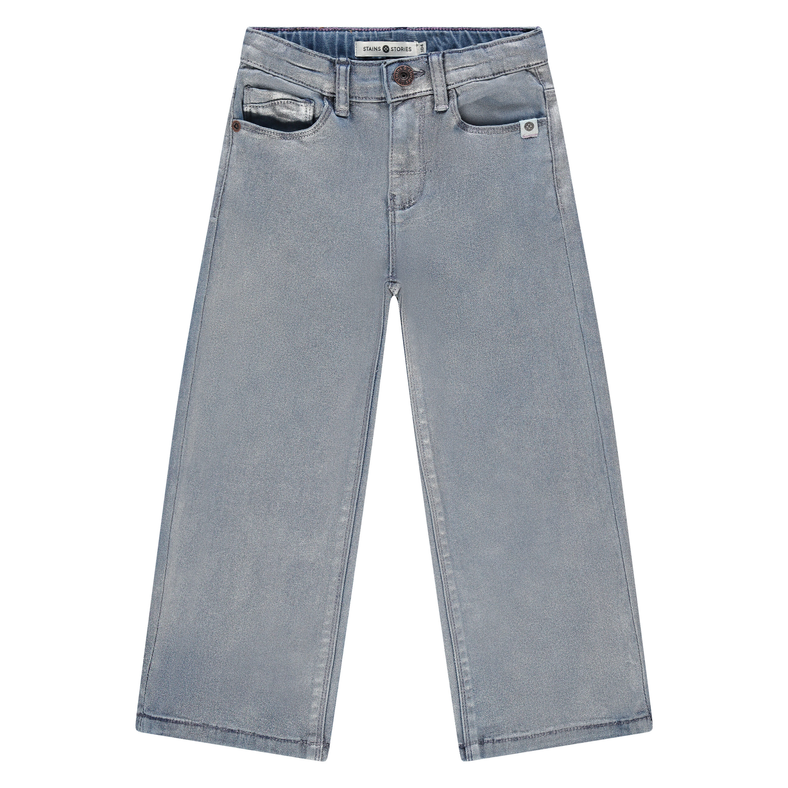 Τζιν παντελόνι σε μεταλλική μπλε απόχρωση και ίσια γραμμή.